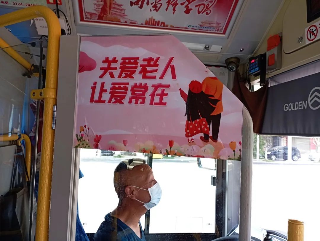 作為公司首條公交“敬老示范線(xiàn)”,1路車(chē)輛上的許多細(xì)節(jié),都體現(xiàn)著對(duì)老年人的關(guān)懷。車(chē)廂內(nèi),駕駛室門(mén)、座位間靠背都貼有尊老敬老的標(biāo)語(yǔ),宣傳敬老文明思想,營(yíng)造和諧溫馨氛。