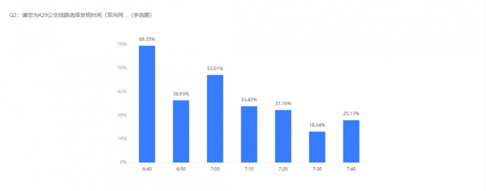 2022年11月18日,市公交集團(tuán)對(duì)《K29公交線路運(yùn)行方案》進(jìn)行了問卷調(diào)查,截止2022年11月23日12時(shí),本次問卷調(diào)查結(jié)束。K29公交線路開通時(shí)間擬定為2022年11月28日,營(yíng)運(yùn)方案以市民投票結(jié)果執(zhí)行。