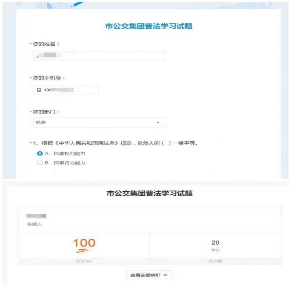 本次活動(dòng)結(jié)束后,通過(guò)后臺(tái)數(shù)據(jù)統(tǒng)計(jì),有效參與率為79%,其中,定制公交公司、公交廣告公司和公交汽修公司參與率為100%。本次競(jìng)賽活動(dòng)的平均正確率為78.3%,離目標(biāo)要求還有一段距離,以后還要繼續(xù)加大民法典宣傳學(xué)習(xí),提高全員法律知識(shí)水平。(通訊員:張克龍)