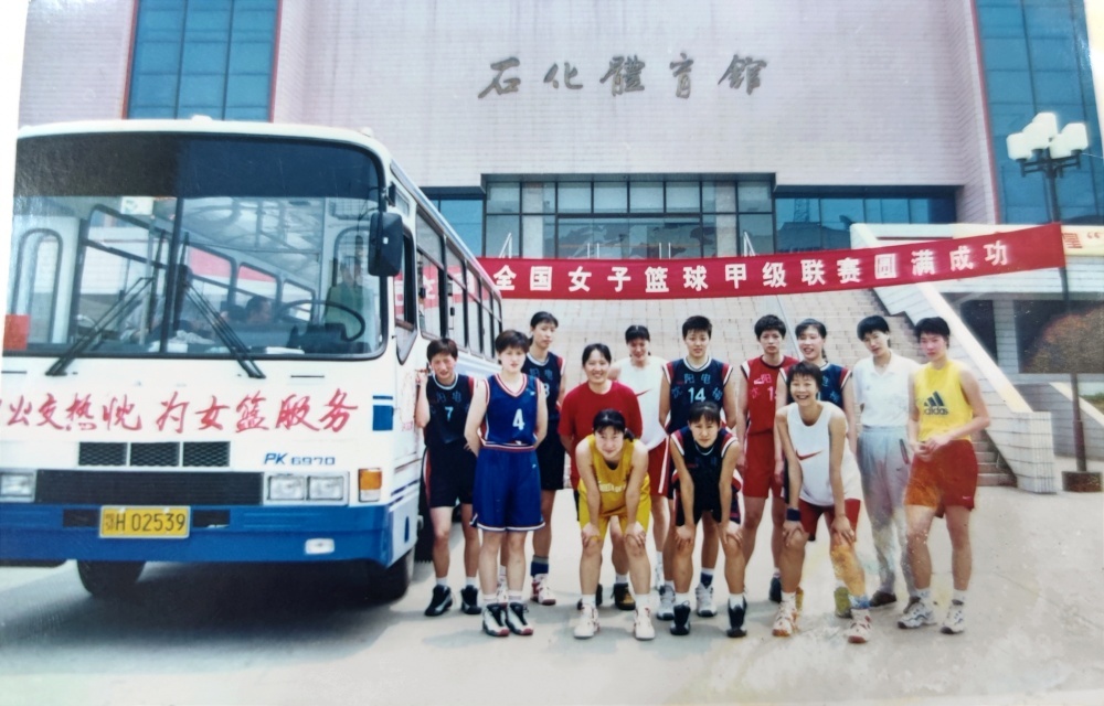 ▲1999年5月25日,沈陽電梯隊在公交車旁合影留戀。從“中國籃球大事記”查閱到,1999年全國女子籃球甲級聯(lián)賽,沈陽電梯隊奪得了當年聯(lián)賽冠軍。