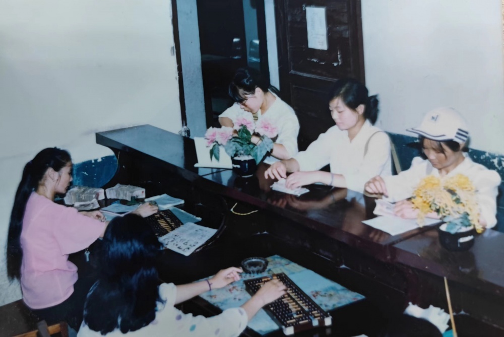 ▲80年代,票務(wù)室工作場景。售票員拿著票款到票務(wù)室,兌換車票。