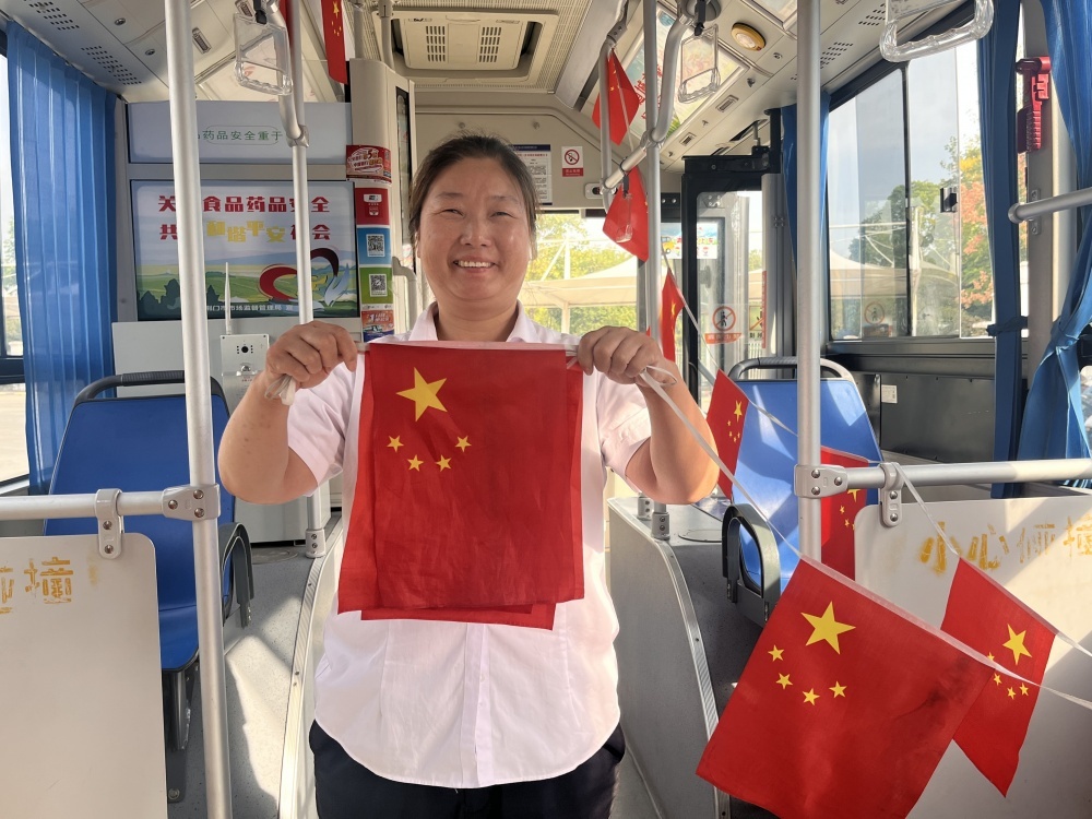 走進(jìn)公交車廂,映入眼簾的是一面面鮮艷的小國(guó)旗,輕輕飄動(dòng),仿佛在向每一位乘客傳遞著節(jié)日的喜悅和祝福,除了車廂內(nèi)部的裝飾,公交車輛的LED顯示屏也成為了重要傳播窗口,全天滾動(dòng)播放國(guó)慶祝福語(yǔ)。這些細(xì)節(jié)布置不僅為車輛增添了節(jié)日色彩,也讓市民的出行體驗(yàn)更加美好。