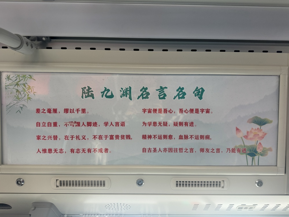 “陸九淵號(hào)”不僅僅是一條公交線路,更是一個(gè)移動(dòng)文化陣地。當(dāng)你踏上這趟公交車,你會(huì)被駕駛員的熱情服務(wù)所感染,他們微笑著迎接每一位乘客,以優(yōu)質(zhì)的服務(wù)彰顯著荊門的文化精神和城市溫度。車輛全部采用新能源公交車,不僅環(huán)保節(jié)能,行駛起來(lái)也更為平穩(wěn),同時(shí),在車輛內(nèi)外裝飾以及“進(jìn)站、出站、溫馨提示”等場(chǎng)景語(yǔ)音播報(bào)融入陸九淵相關(guān)元素,讓乘客潛移默化的加深對(duì)荊門文化的認(rèn)識(shí)和理解。