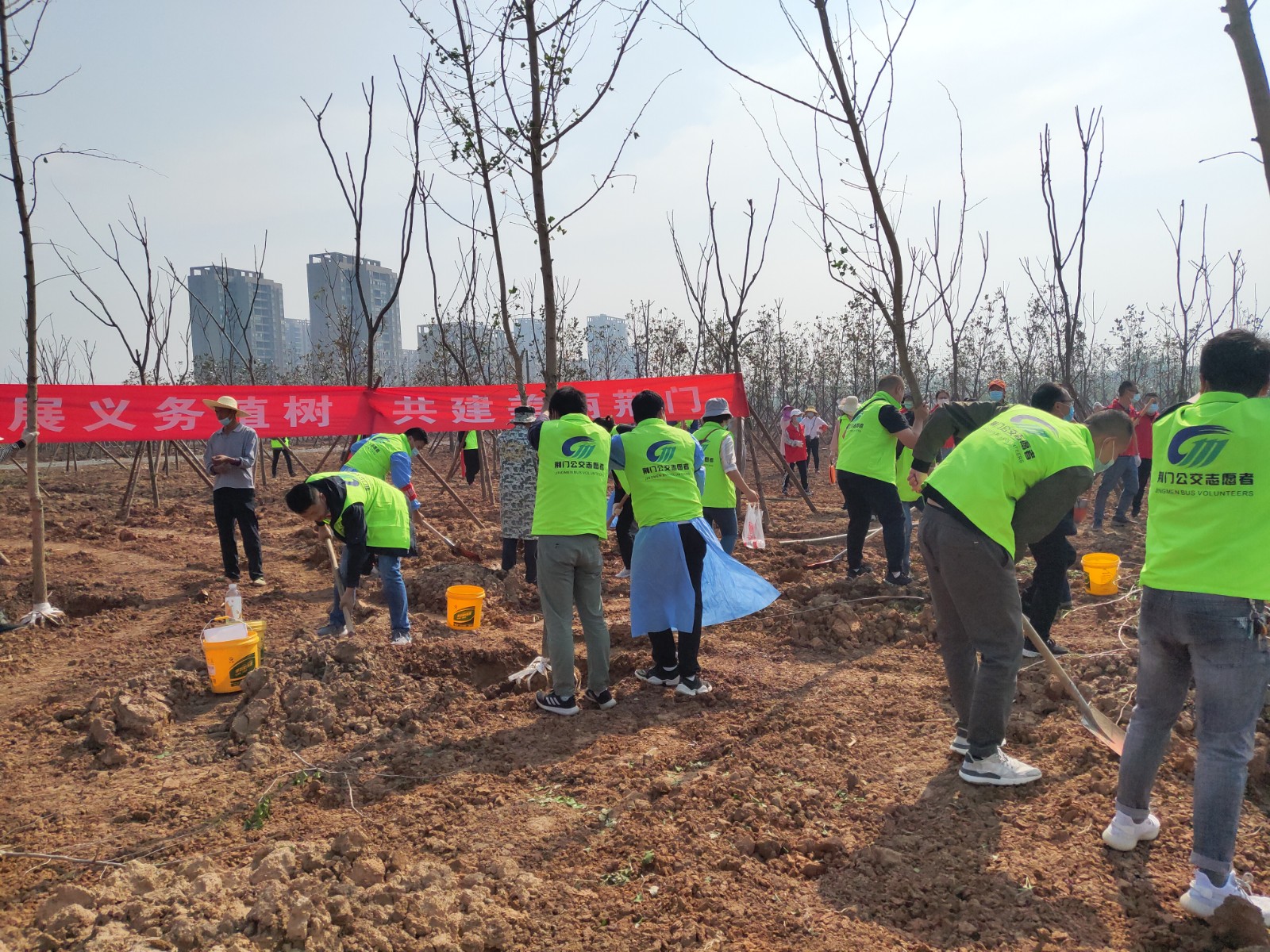 4月29日,荊門晚報第十二屆讀者林植樹活動開展,在漳河大道仙楊路植樹點,上百晚報讀者、志愿者隊伍參加了植樹活動。荊門公交集團(tuán)14名公交志愿者積極參與活動,并調(diào)派兩輛公交車進(jìn)行義務(wù)接送..