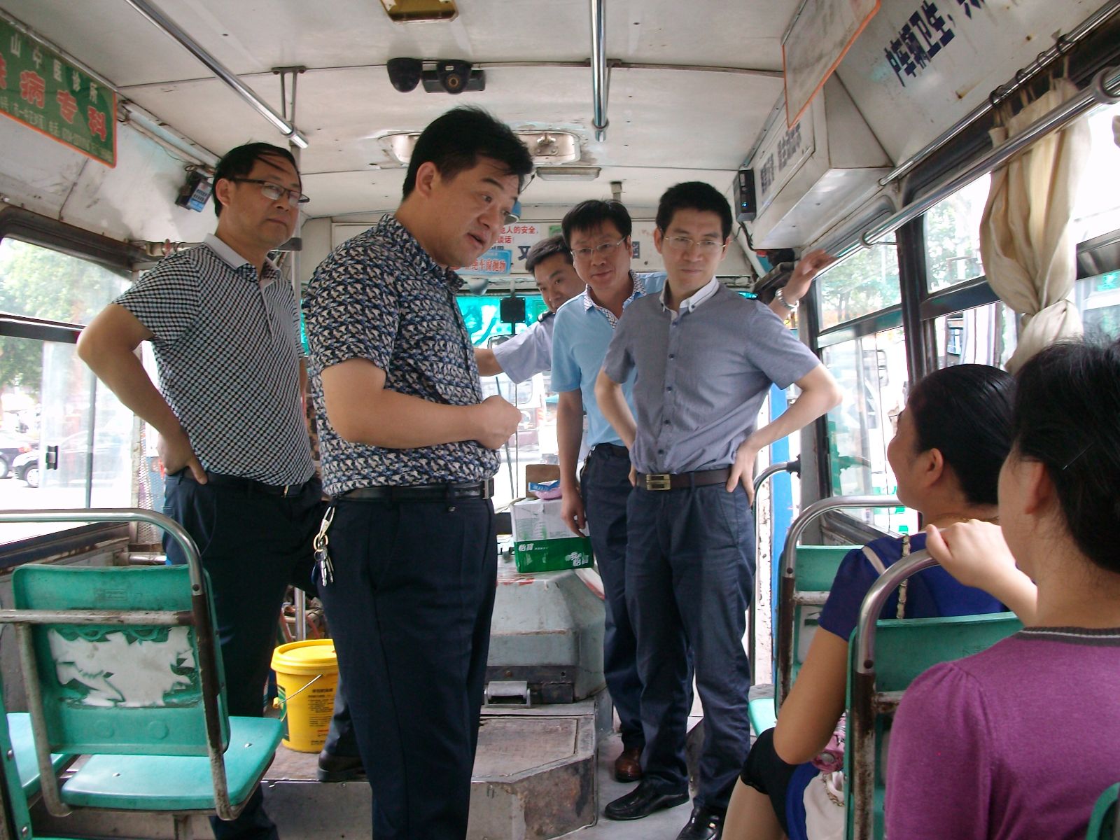 當(dāng)日中午12時(shí),正值高溫時(shí)刻,伍應(yīng)彪等領(lǐng)導(dǎo)冒著炎炎夏日來(lái)到?;圮囌?,看望慰問(wèn)高溫下堅(jiān)守工作崗位的公交職工。在16路、21路、22路線正待發(fā)班的公交車前,伍應(yīng)彪上車與一線駕駛員親切握手,詢問(wèn)了解駕駛員們的身體和工作情況,并聽取了一公司負(fù)責(zé)人對(duì)改善職工們的工作和休息環(huán)境等工作匯報(bào)。在與駕駛員們親切交談中,伍應(yīng)彪親自為駕駛員們送上了礦泉水、毛巾、人丹、清涼油等防暑降溫用品。同時(shí),他還向部分乘客征求了改善乘車環(huán)境的意見和建議。