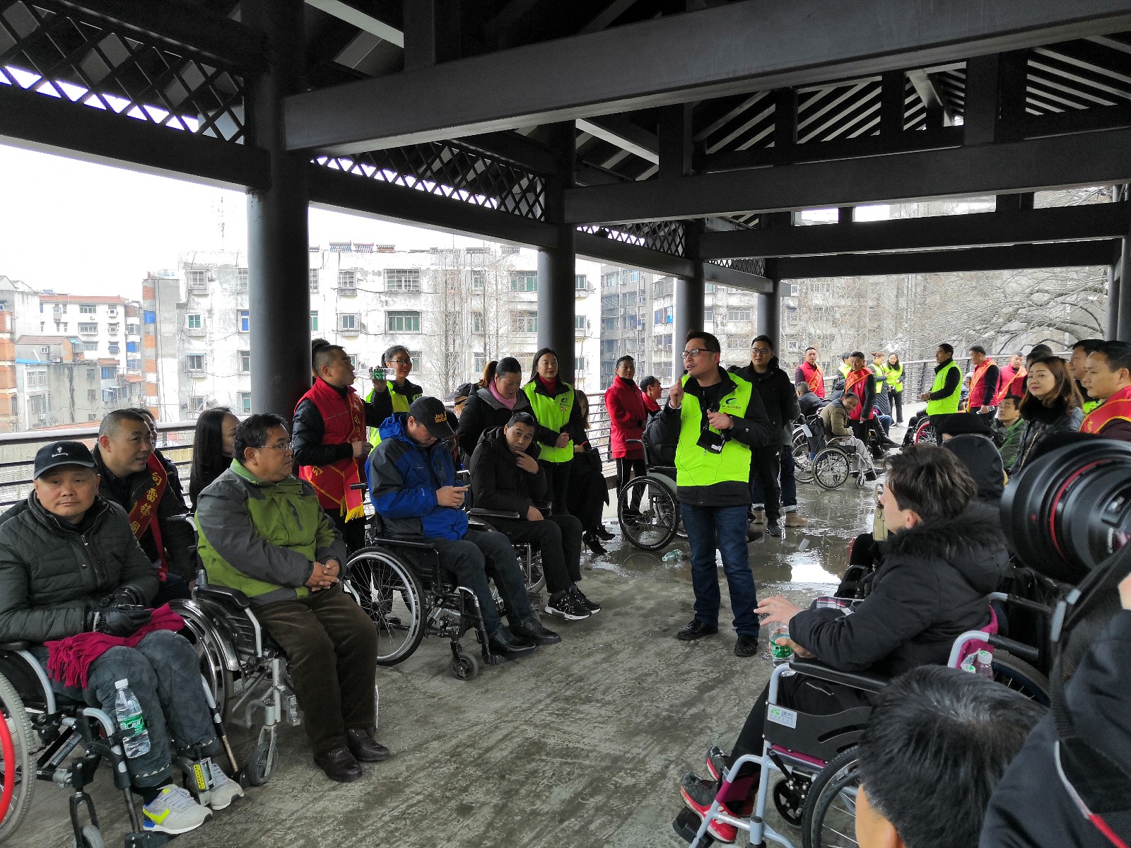 龍泉公園長廊,在公園導游的介紹下,殘疾朋友及隨行的志愿者們更清楚的知道了龍泉公園的建園歷史和荊門故事。