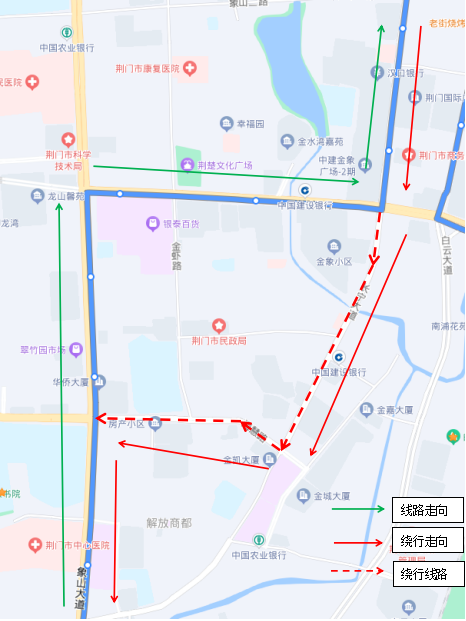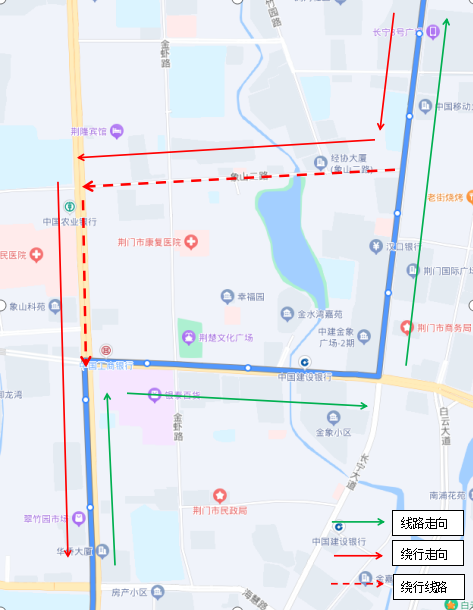 調(diào)整后新增??空军c(diǎn):瀏河橋(西側(cè))、金寧小區(qū)(西側(cè))、荊門電視臺(tái)(西側(cè))、鳳臺(tái)社區(qū)(北側(cè))、?;壑袑W(xué)(北側(cè))。