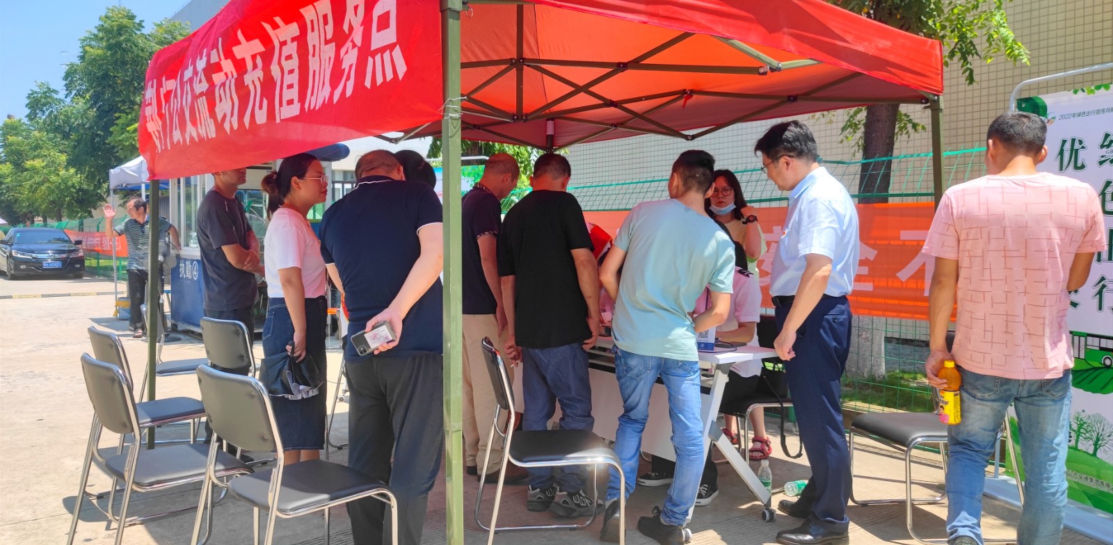 當天中午12時,正是一天最炎熱的時候,也是廠區(qū)職工午休時間。選在這個時間段開展流動服務,是可以最大程度方便殘疾工友,不會耽擱到他們的生產(chǎn)作業(yè),更不會影響他們正常休息,服務點就設在他們下班的必經(jīng)路。